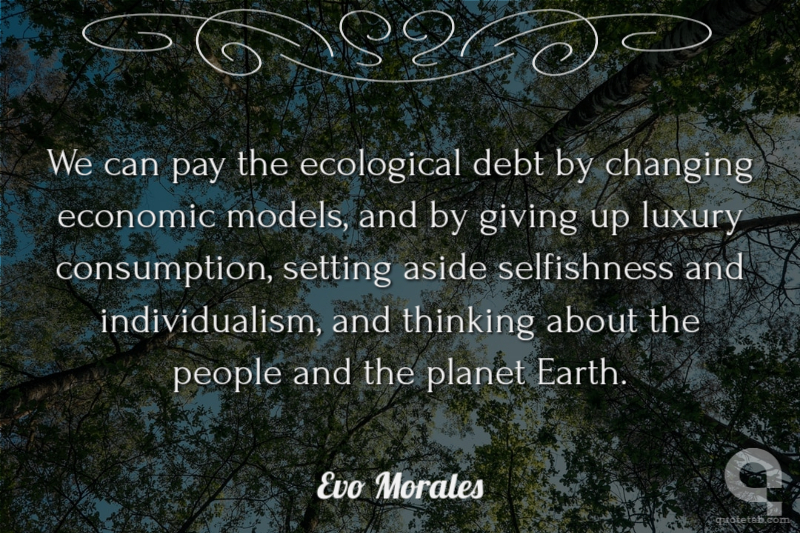 We can pay the ecological debt by changing economic models, and by giving up luxury consumption, setting aside selfishness and individualism, and thinking about the people and the planet Earth.