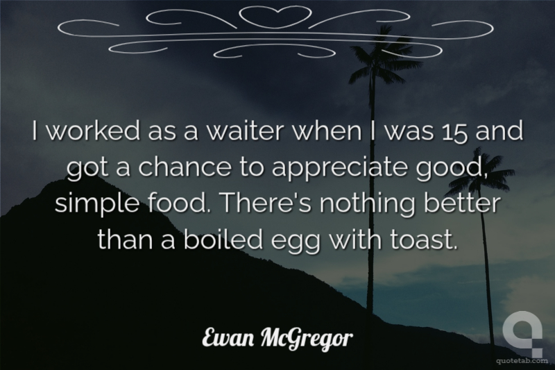 I worked as a waiter when I was 15 and got a chance to appreciate good, simple food. There's nothing better than a boiled egg with toast.
