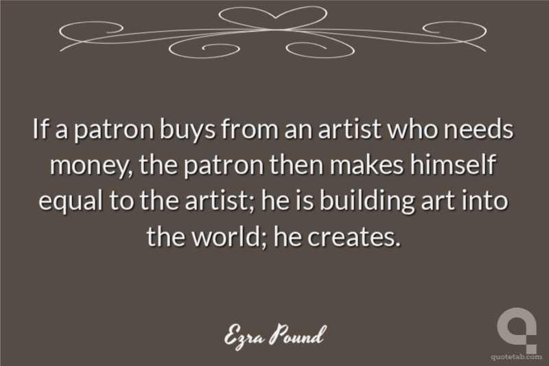 If a patron buys from an artist who needs money, the patron then makes himself equal to the artist; he is building art into the world; he creates.