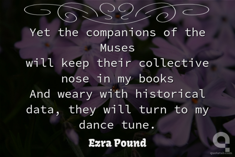 Yet the companions of the Muses will keep their collective nose in my books And weary with historical data, they will turn to my dance tune.