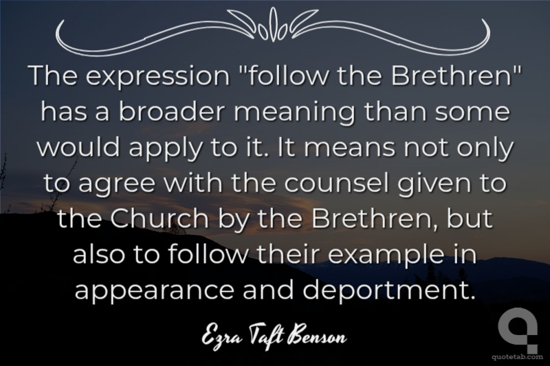 The expression "follow the Brethren" has a broader meaning than some would apply to it. It means not only to agree with the counsel given to the Church by the Brethren, but also to follow their example in appearance and deportment.
