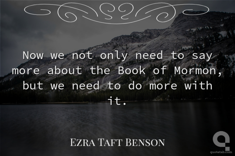 Now we not only need to say more about the Book of Mormon, but we need to do more with it.