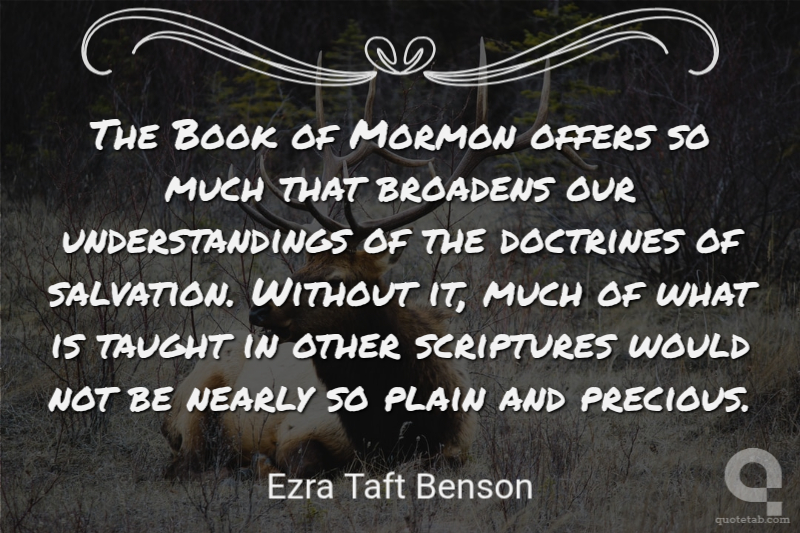 The Book of Mormon offers so much that broadens our understandings of the doctrines of salvation. Without it, much of what is taught in other scriptures would not be nearly so plain and precious.