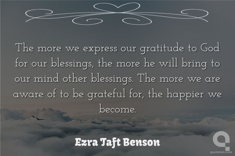 The more we express our gratitude to God for our blessings, the more he will bring to our mind other blessings. The more we are aware of to be grateful for, the happier we become.