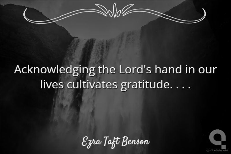Acknowledging the Lord's hand in our lives cultivates gratitude. . . .