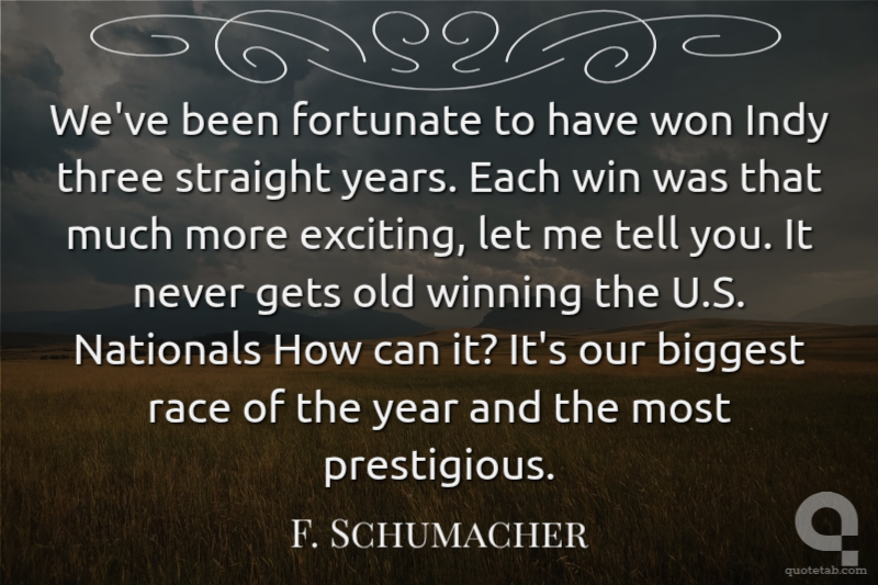 We've been fortunate to have won Indy three straight years. Each win was that much more exciting, let me tell you. It never gets old winning the U.S. Nationals How can it? It's our biggest race of the year and the most prestigious.