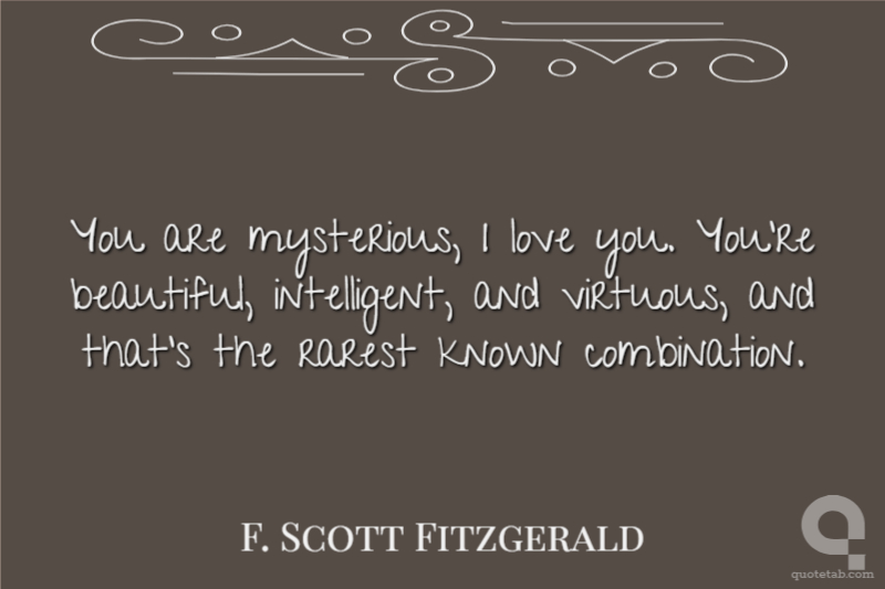 You are mysterious, I love you. You’re beautiful, intelligent, and virtuous, and that’s the rarest known combination.
