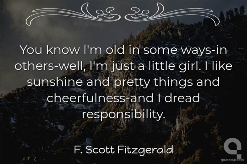 You know I'm old in some ways-in others-well, I'm just a little girl. I like sunshine and pretty things and cheerfulness-and I dread responsibility.