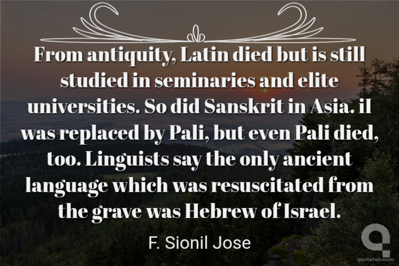 From antiquity, Latin died but is still studied in seminaries and elite universities. So did Sanskrit in Asia. iI was replaced by Pali, but even Pali died, too. Linguists say the only ancient language which was resuscitated from the grave was Hebrew of Israel.