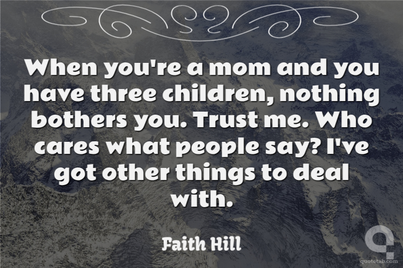 When you're a mom and you have three children, nothing bothers you. Trust me. Who cares what people say? I've got other things to deal with.