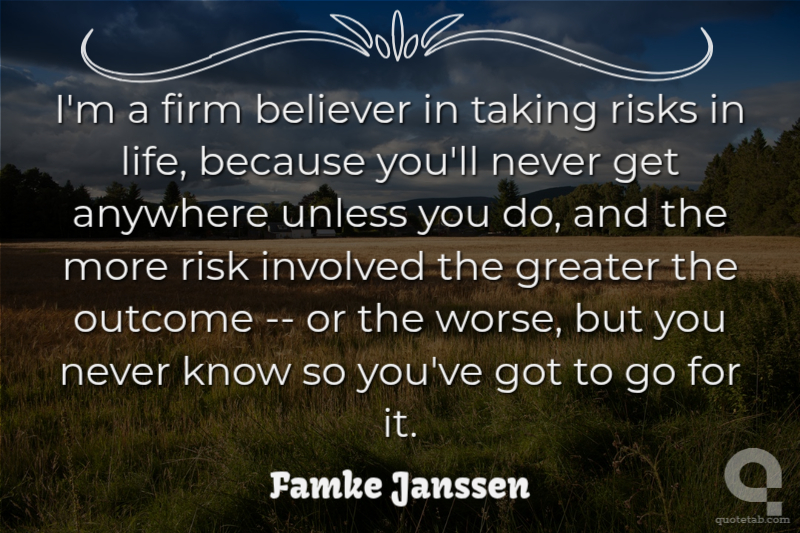 I'm a firm believer in taking risks in life, because you'll never get anywhere unless you do, and the more risk involved the greater the outcome -- or the worse, but you never know so you've got to go for it.