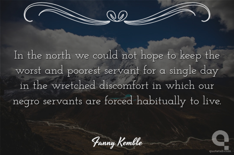 In the north we could not hope to keep the worst and poorest servant for a single day in the wretched discomfort in which our negro servants are forced habitually to live.
