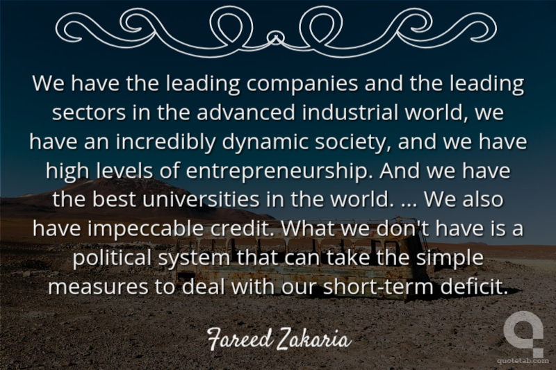 We have the leading companies and the leading sectors in the advanced industrial world, we have an incredibly dynamic society, and we have high levels of entrepreneurship. And we have the best universities in the world. ... We also have impeccable credit. What we don't have is a political system that can take the simple measures to deal with our short-term deficit.