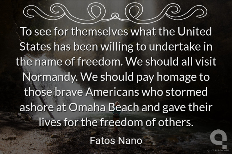 To see for themselves what the United States has been willing to undertake in the name of freedom. We should all visit Normandy. We should pay homage to those brave Americans who stormed ashore at Omaha Beach and gave their lives for the freedom of others.