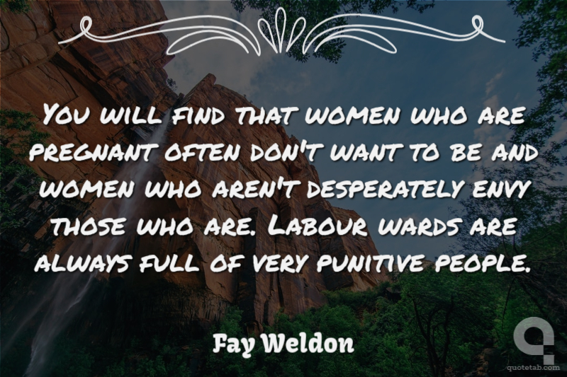 You will find that women who are pregnant often don't want to be and women who aren't desperately envy those who are. Labour wards are always full of very punitive people.