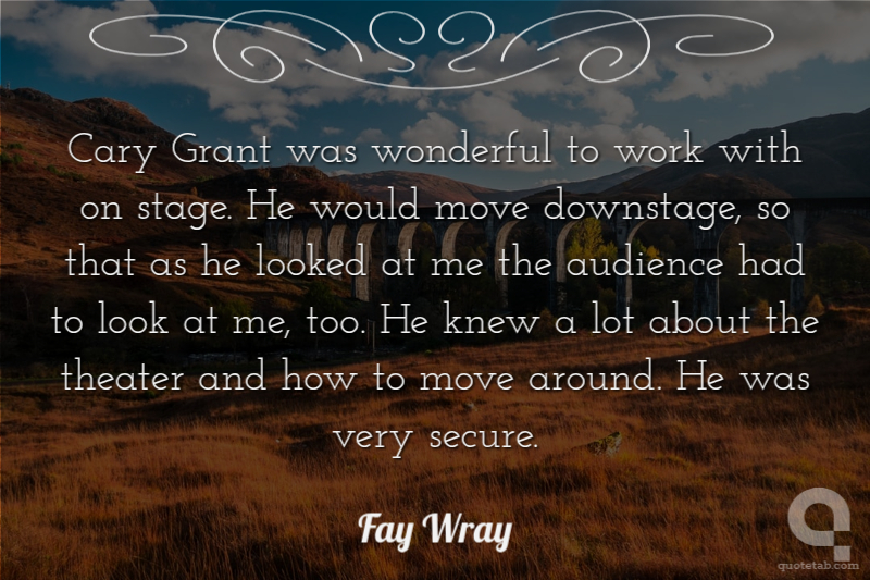 Cary Grant was wonderful to work with on stage. He would move downstage, so that as he looked at me the audience had to look at me, too. He knew a lot about the theater and how to move around. He was very secure.