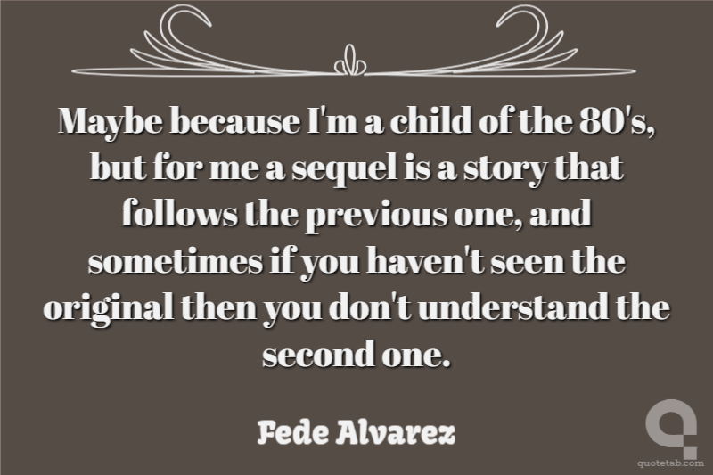 Maybe because I'm a child of the '80s, but for me, a sequel is a story that follows the previous one, and sometimes if you haven't seen the original, then you don't understand the second one. Like 'Back to the Future 2.' If you haven't seen the first one, you're not going to get anything out of 'Back to the Future 2.'