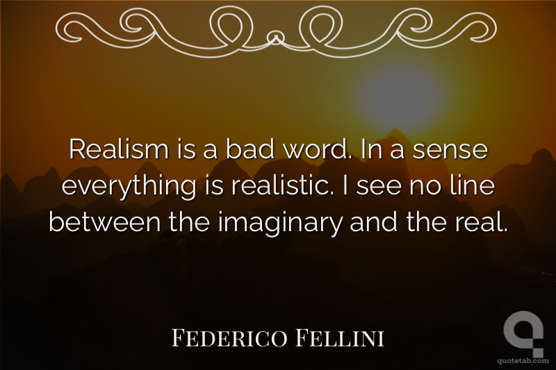Realism is a bad word. In a sense everything is realistic. I see no line between the imaginary and the real.