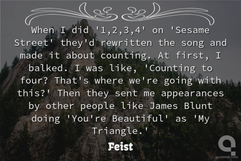 When I did '1,2,3,4' on 'Sesame Street' they'd rewritten the song and made it about counting. At first, I balked. I was like, 'Counting to four? That's where we're going with this?' Then they sent me appearances by other people like James Blunt doing 'You're Beautiful' as 'My Triangle.'
