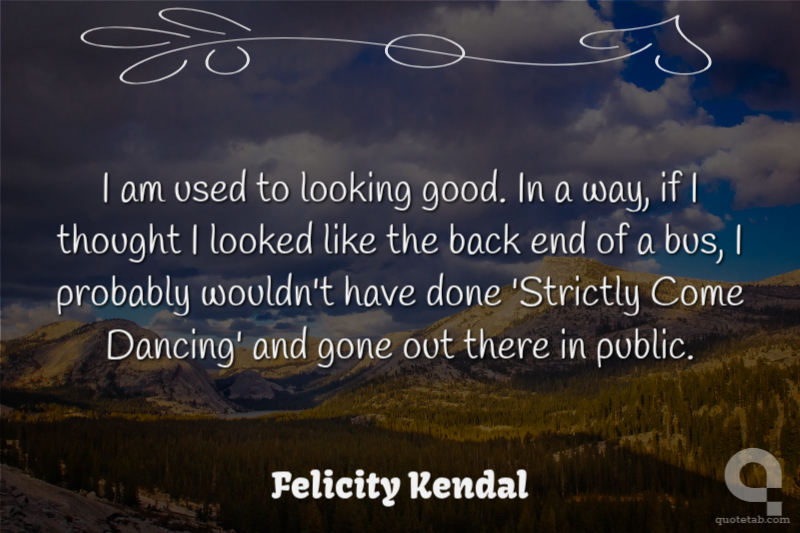 I am used to looking good. In a way, if I thought I looked like the back end of a bus, I probably wouldn't have done 'Strictly Come Dancing' and gone out there in public.
