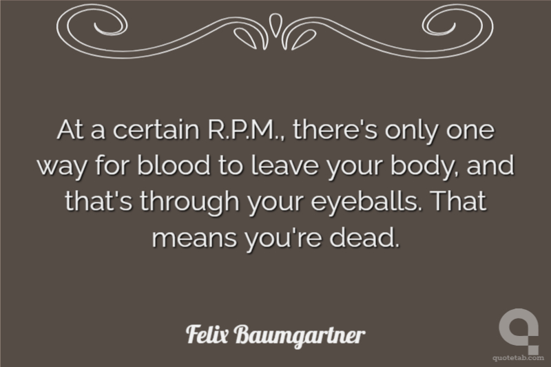 At a certain R.P.M., there's only one way for blood to leave your body, and that's through your eyeballs. That means you're dead.