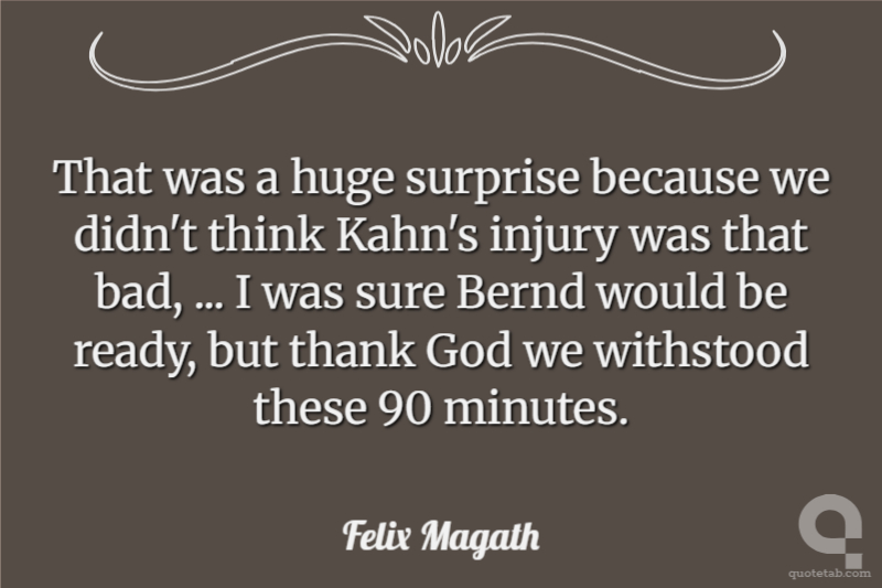 That was a huge surprise because we didn't think Kahn's injury was that bad, ... I was sure Bernd would be ready, but thank God we withstood these 90 minutes.
