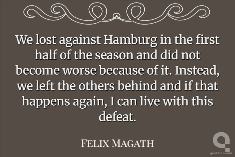 We lost against Hamburg in the first half of the season and did not become worse because of it. Instead, we left the others behind and if that happens again, I can live with this defeat.