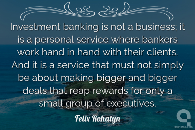 Investment banking is not a business; it is a personal service where bankers work hand in hand with their clients. And it is a service that must not simply be about making bigger and bigger deals that reap rewards for only a small group of executives.