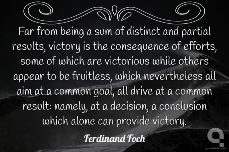 Far from being a sum of distinct and partial results, victory is the consequence of efforts, some of which are victorious while others appear to be fruitless, which nevertheless all aim at a common goal, all drive at a common result: namely, at a decision, a conclusion which alone can provide victory.