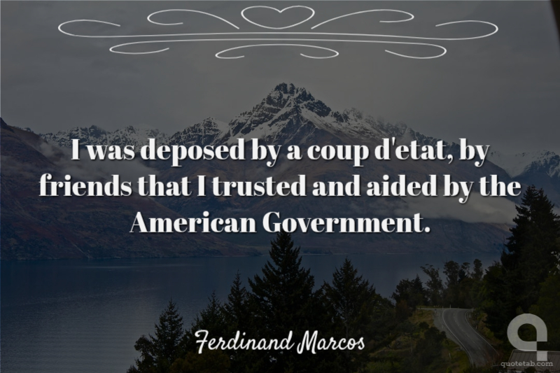 I was deposed by a coup d'etat, by friends that I trusted and aided by the American Government.