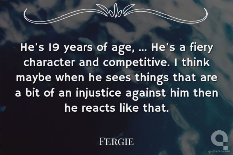 He's 19 years of age, ... He's a fiery character and competitive. I think maybe when he sees things that are a bit of an injustice against him then he reacts like that.
