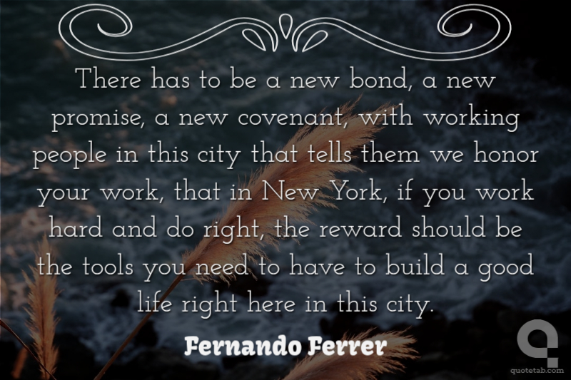 There has to be a new bond, a new promise, a new covenant, with working people in this city that tells them we honor your work, that in New York, if you work hard and do right, the reward should be the tools you need to have to build a good life right here in this city.