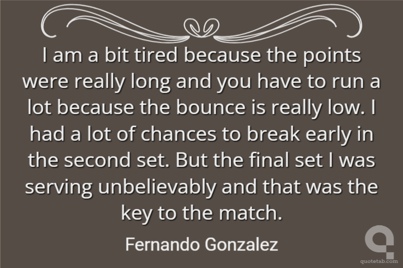 I am a bit tired because the points were really long and you have to run a lot because the bounce is really low. I had a lot of chances to break early in the second set. But the final set I was serving unbelievably and that was the key to the match.