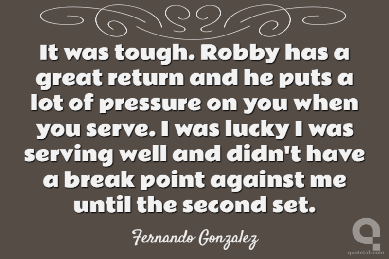 It was tough. Robby has a great return and he puts a lot of pressure on you when you serve. I was lucky I was serving well and didn't have a break point against me until the second set.