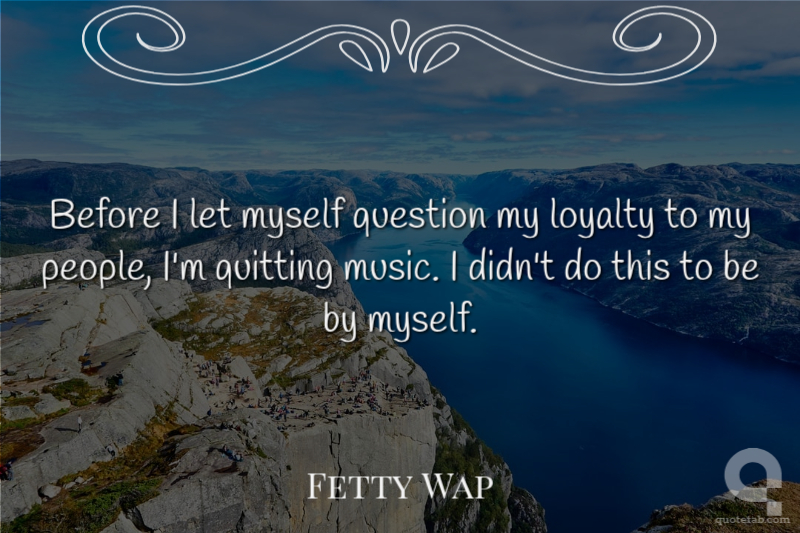 Before I let myself question my loyalty to my people, I'm quitting music. I didn't do this to be by myself.