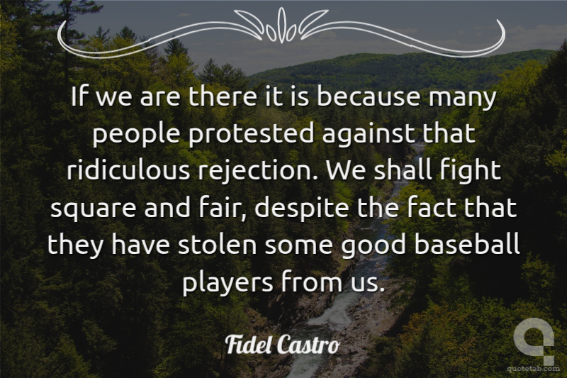 If we are there it is because many people protested against that ridiculous rejection. We shall fight square and fair, despite the fact that they have stolen some good baseball players from us.