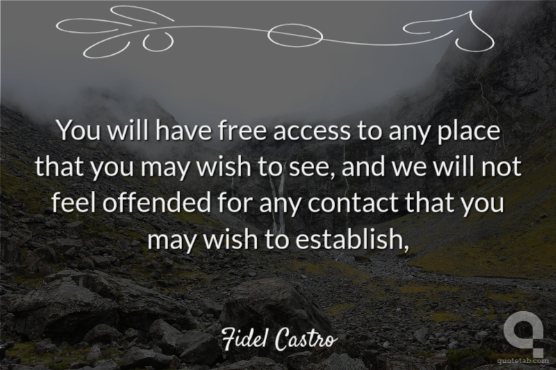 You will have free access to any place that you may wish to see, and we will not feel offended for any contact that you may wish to establish,