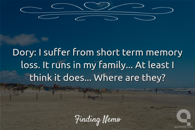 Dory: I suffer from short term memory loss. It runs in my family... At least I think it does... Where are they?