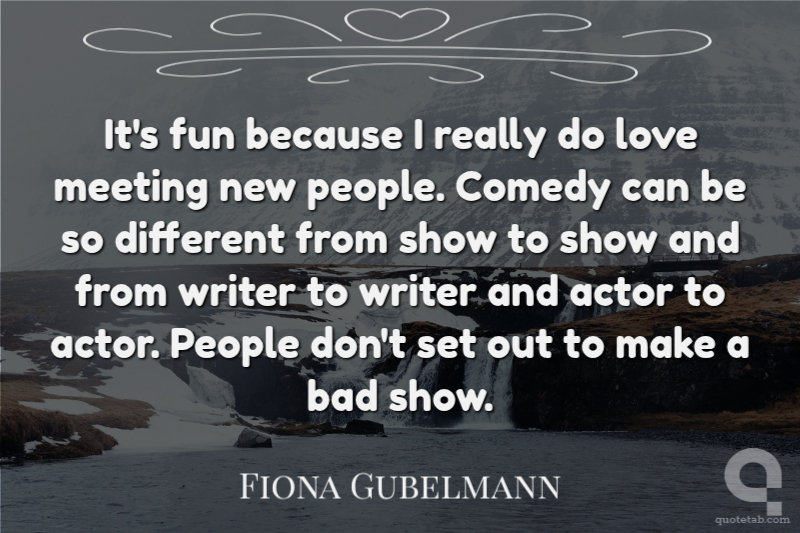 It's fun because I really do love meeting new people. Comedy can be so different from show to show and from writer to writer and actor to actor. People don't set out to make a bad show.