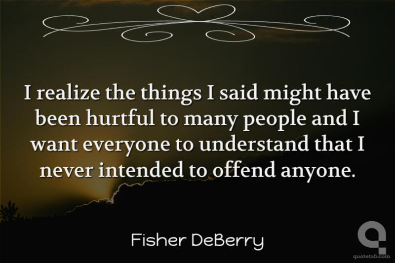 I realize the things I said might have been hurtful to many people and I want everyone to understand that I never intended to offend anyone.