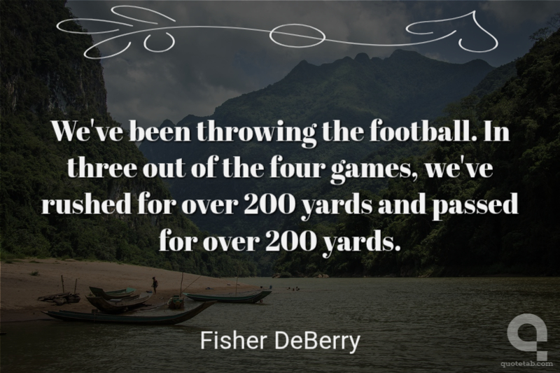 We've been throwing the football. In three out of the four games, we've rushed for over 200 yards and passed for over 200 yards.