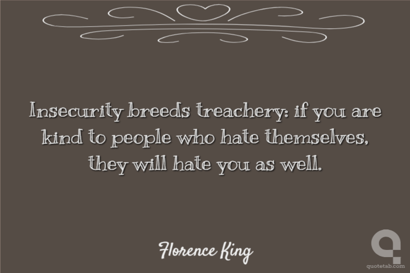 Insecurity breeds treachery: if you are kind to people who hate themselves, they will hate you as well.