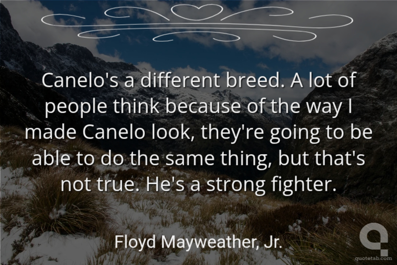 Canelo's a different breed. A lot of people think because of the way I made Canelo look, they're going to be able to do the same thing, but that's not true. He's a strong fighter.