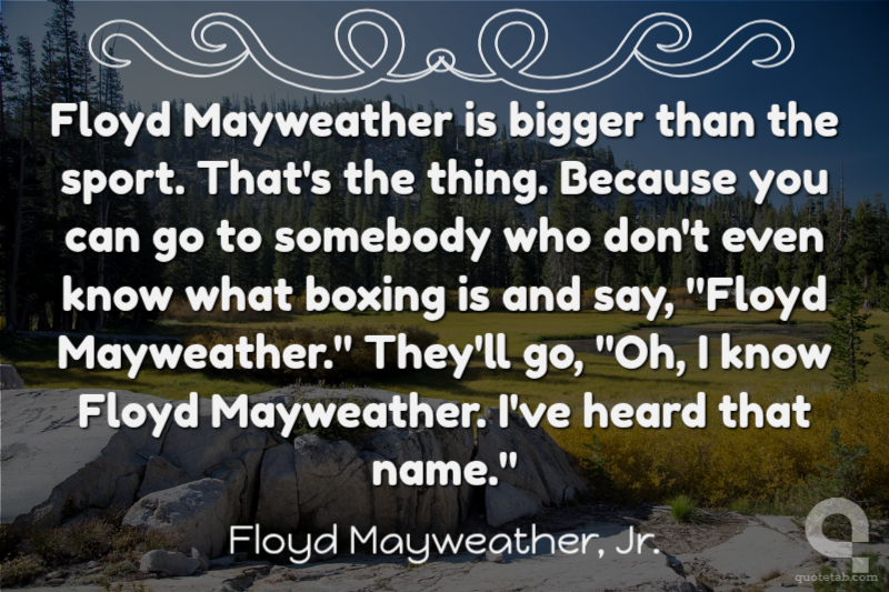 Floyd Mayweather is bigger than the sport. That's the thing. Because you can go to somebody who don't even know what boxing is and say, "Floyd Mayweather." They'll go, "Oh, I know Floyd Mayweather. I've heard that name."