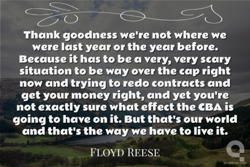 Thank goodness we're not where we were last year or the year before. Because it has to be a very, very scary situation to be way over the cap right now and trying to redo contracts and get your money right, and yet you're not exactly sure what effect the CBA is going to have on it. But that's our world and that's the way we have to live it.