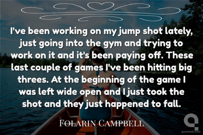 I've been working on my jump shot lately, just going into the gym and trying to work on it and it's been paying off. These last couple of games I've been hitting big threes. At the beginning of the game I was left wide open and I just took the shot and they just happened to fall.