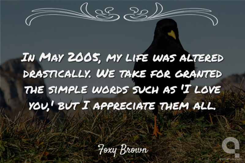 In May 2005, my life was altered drastically. We take for granted the simple words such as 'I love you,' but I appreciate them all.