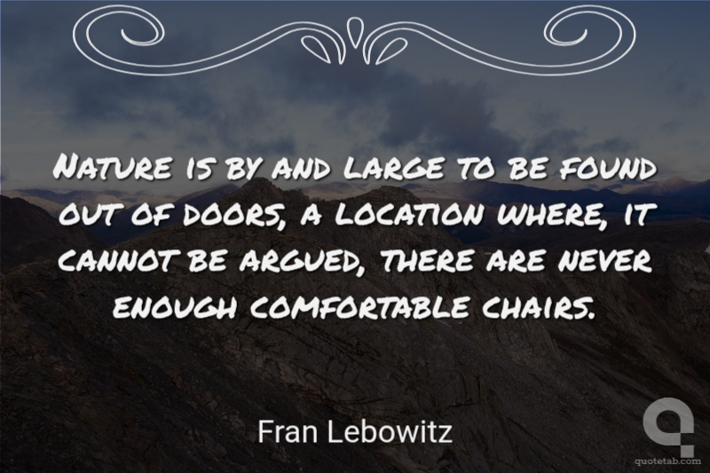 Nature is by and large to be found out of doors, a location where, it cannot be argued, there are never enough comfortable chairs.