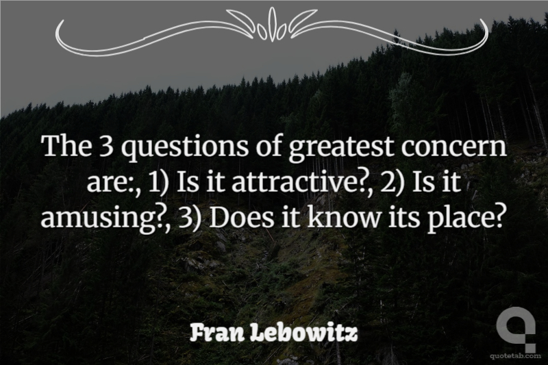 The 3 questions of greatest concern are:, 1) Is it attractive?, 2) Is it amusing?, 3) Does it know its place?