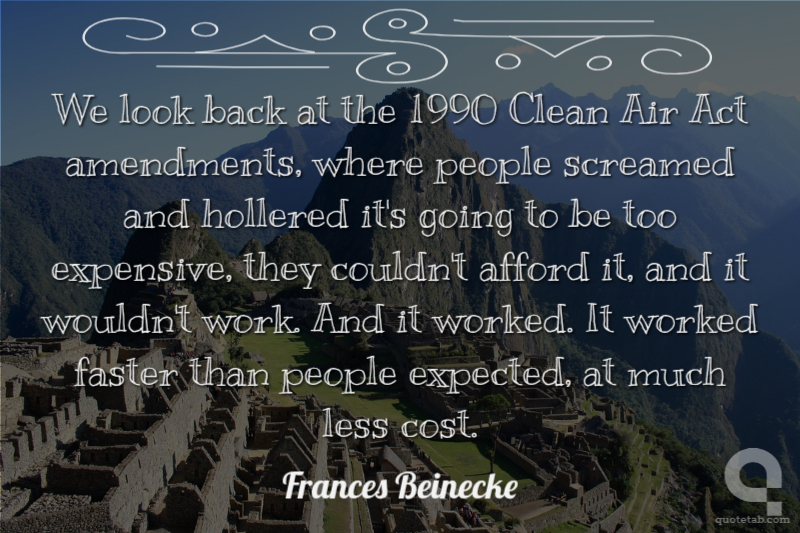 We look back at the 1990 Clean Air Act amendments, where people screamed and hollered it's going to be too expensive, they couldn't afford it, and it wouldn't work. And it worked. It worked faster than people expected, at much less cost.
